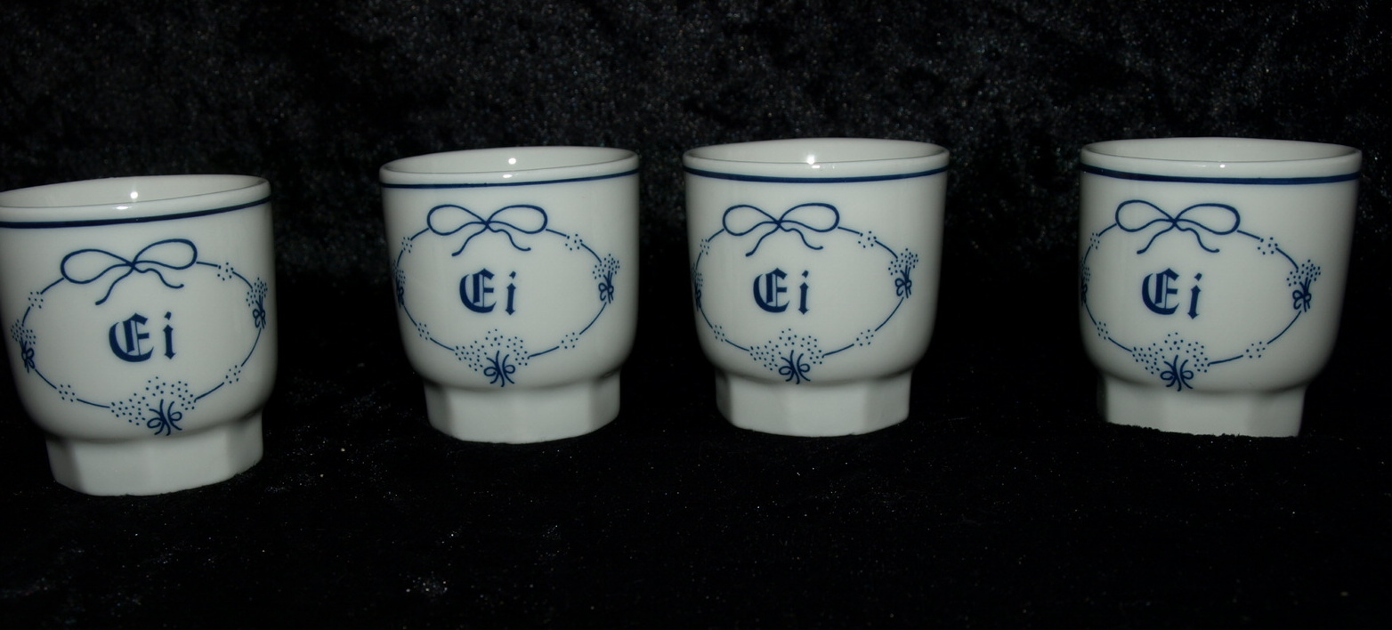 mit einem Applatzer, der wenn der Eierbecher in Benutzung ist nur auffält wenn man drauf achtet, s. Bild